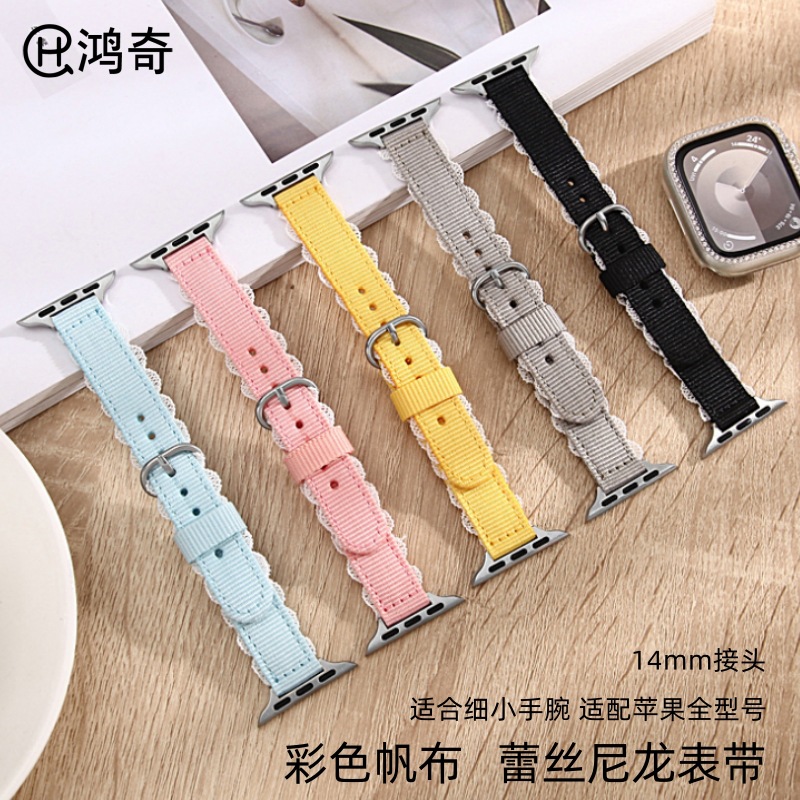新しいスタイル Apple s10 レース時計ストラップスプライシングナイロン iwatch9s8 キャンバススモールウエスト女性の小さな手首に適しています