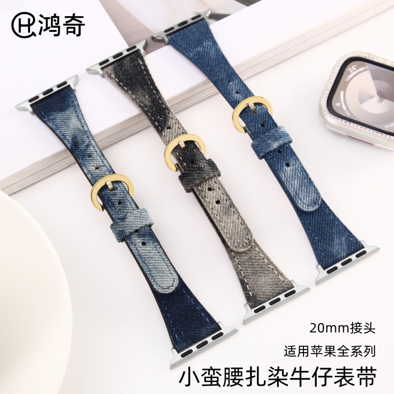 Apple s10 時計ストラップスモールウエスト Y 字型キャンバスデニム絞り染め iwatch9 馬蹄バックル 42 ミリメートル女性に適しています