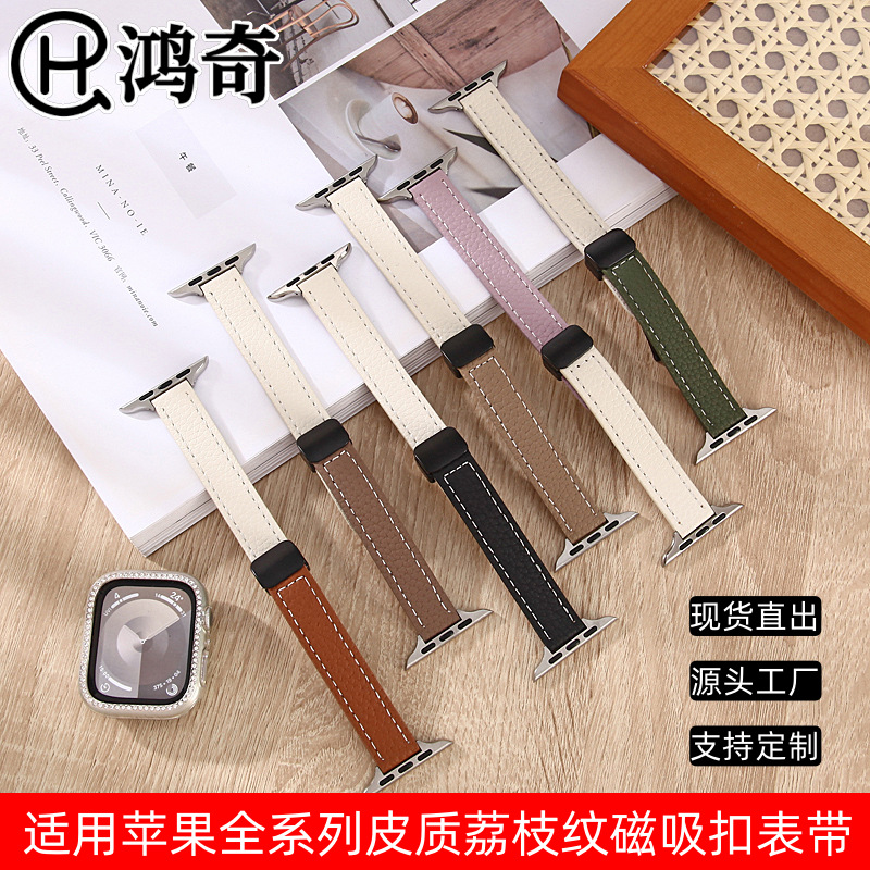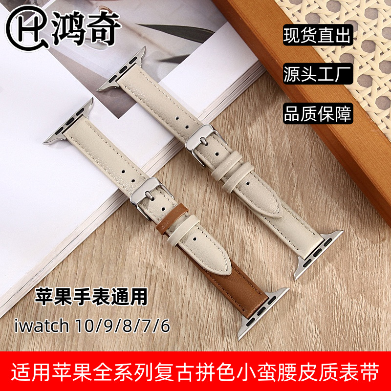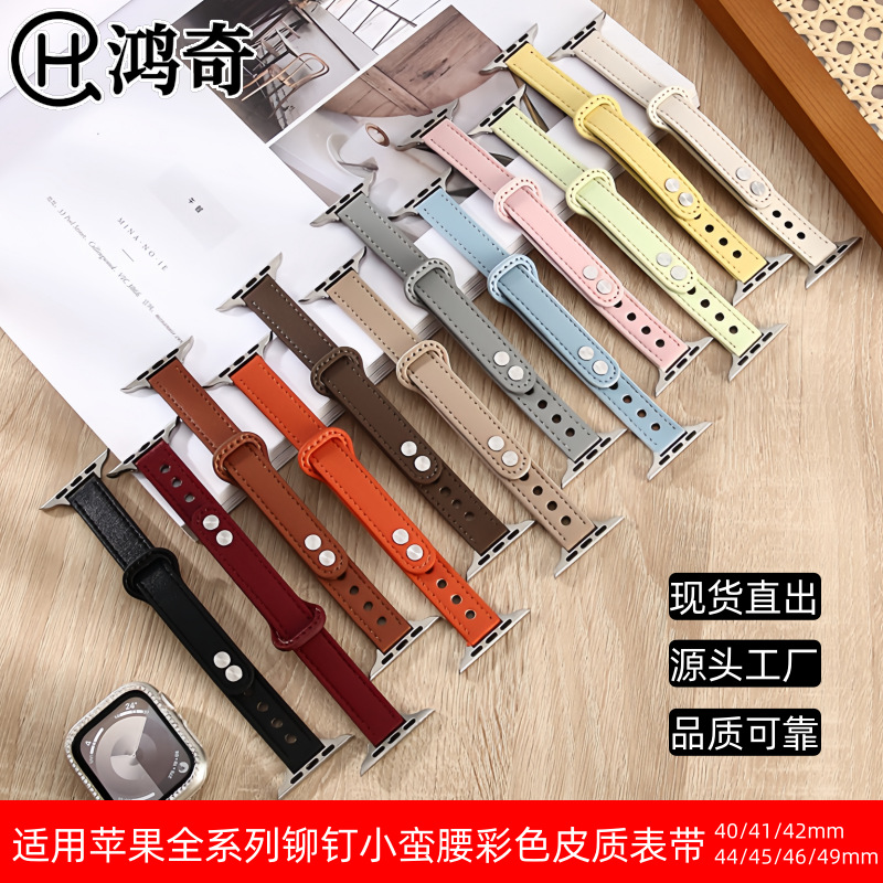 Apple iwatch10 時計ストラップ、スモールウエストリベット、薄いダブルスタッズバックルレザーインレディースウォッチチェーンに適しています。