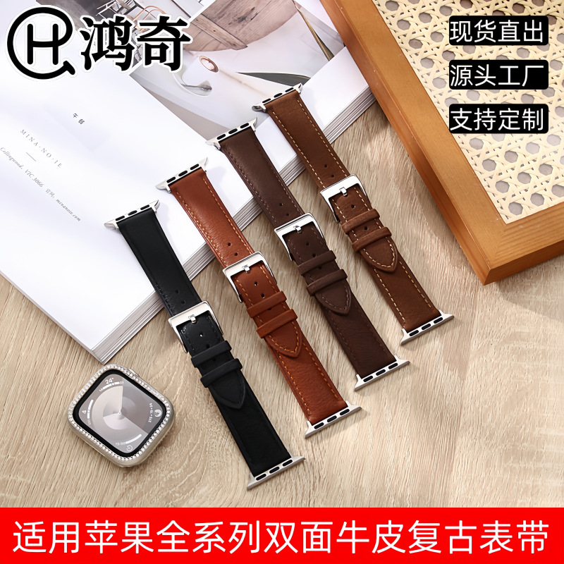 Apple S10 時計ストラップに適したレトロな本革 iwatch 第 9 世代 SE 第 1 層オイルワックス牛革リストバンド男性用