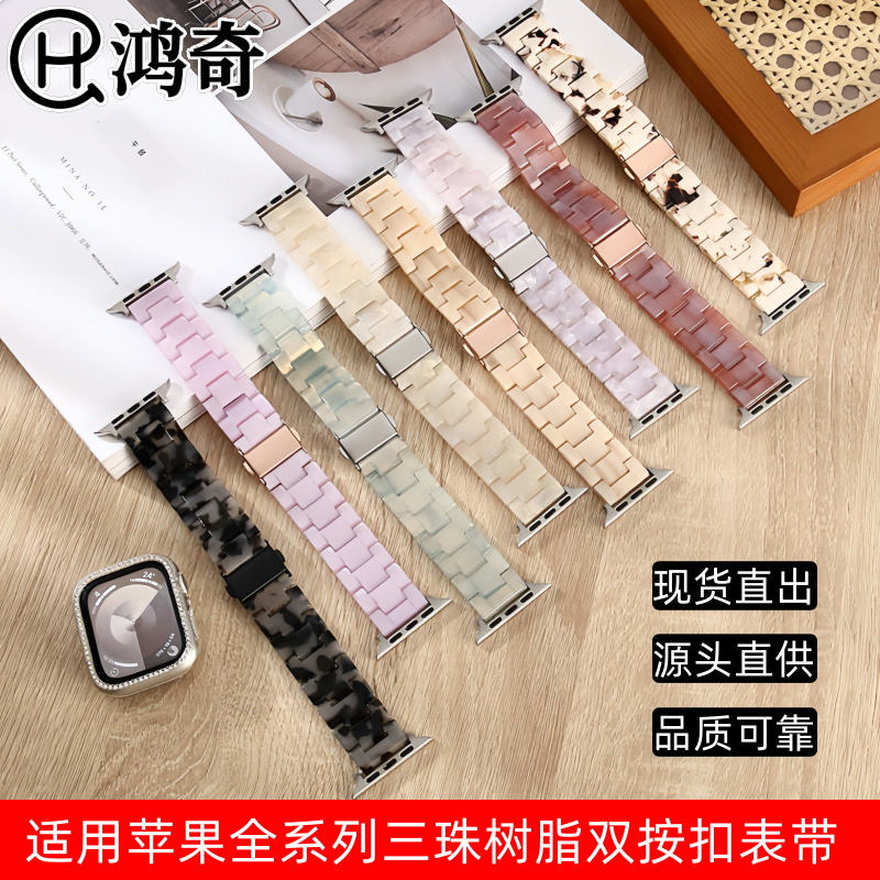国境を越えた起爆金はリンゴs10透明バンドiwatch98天然樹脂三珠金属双押し時計チェーンを適用する
