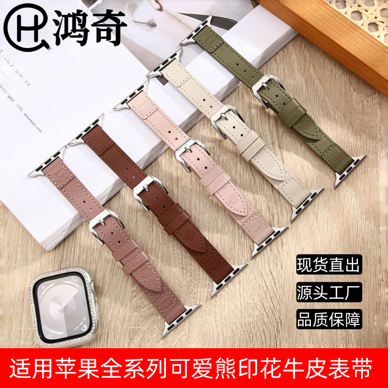 新品対応アップルS10皮腕时计バンド高级感insベアプリントiwatch98代レディース腕时计チェーン细い金