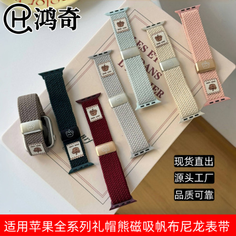 Apple S10 キャンバスウォッチストラップ タッセルベア iwatchS9 ナイロン織り磁気ループブレスレット 42mm に適しています。