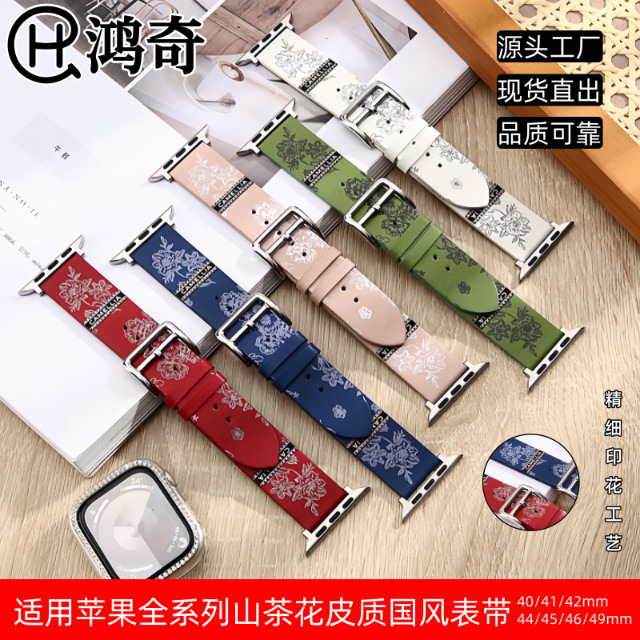 Apple s10 時計ストラップレザー東洋風椿 iwatch9 世代 se87 気質モデル 42 ミリメートルに適しています