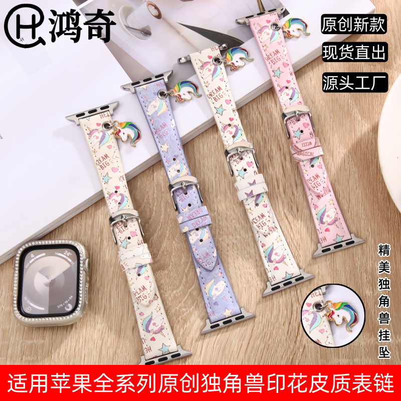 Apple S10 時計ストラップ レインボー ユニコーン レザー applewatch9s8 マイリトルポニー プリント 42mm に適しています。