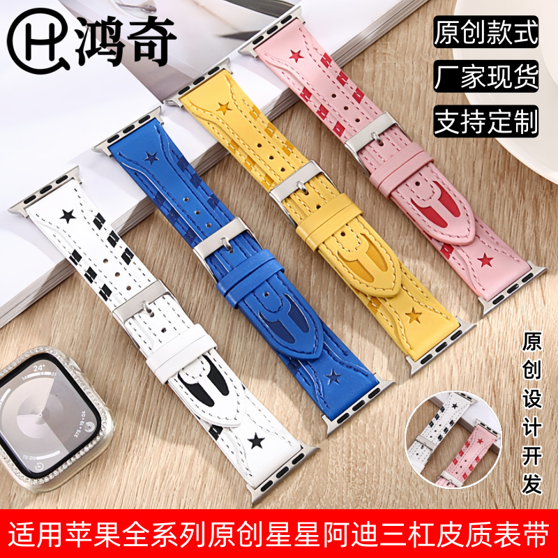 Apple S10 ストラップに適した新しいモデルオリジナルスターアディ牛革スリーストライクトレンディニュートラルウォッチチェーン 42 ミリメートル