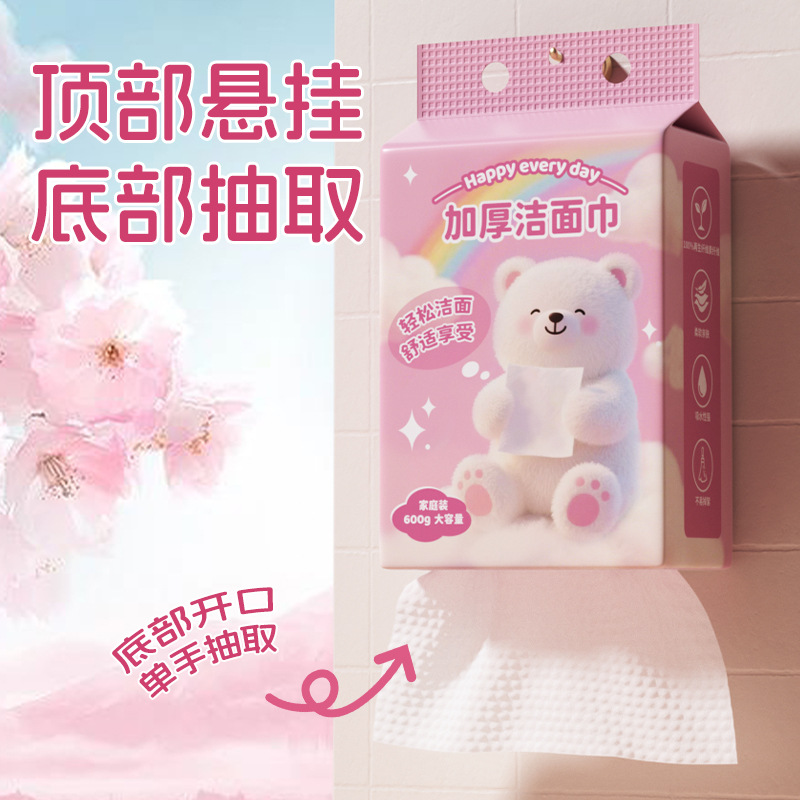 使い捨てフェイスタオル 大容量 吊り下げ式 コットンソフトタオル 赤ちゃんにも使える 毛羽立ちなし 柔らかく肌に優しい