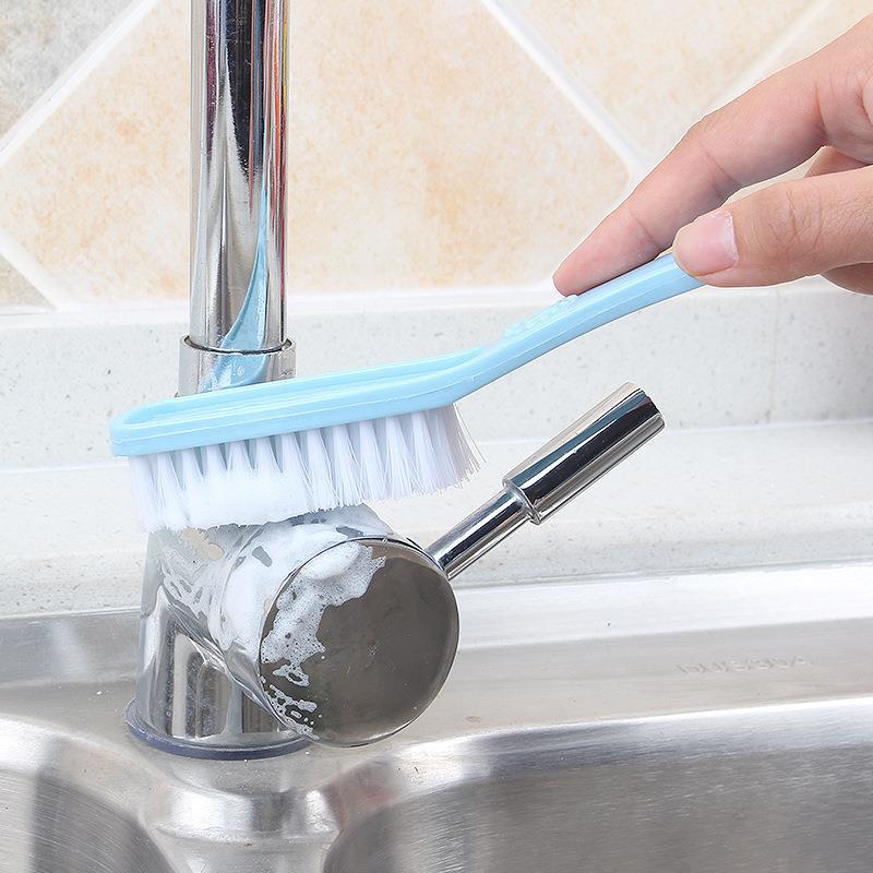 長い柄の柔らかい毛の小さい靴は無地の靴のブラシをこすります。