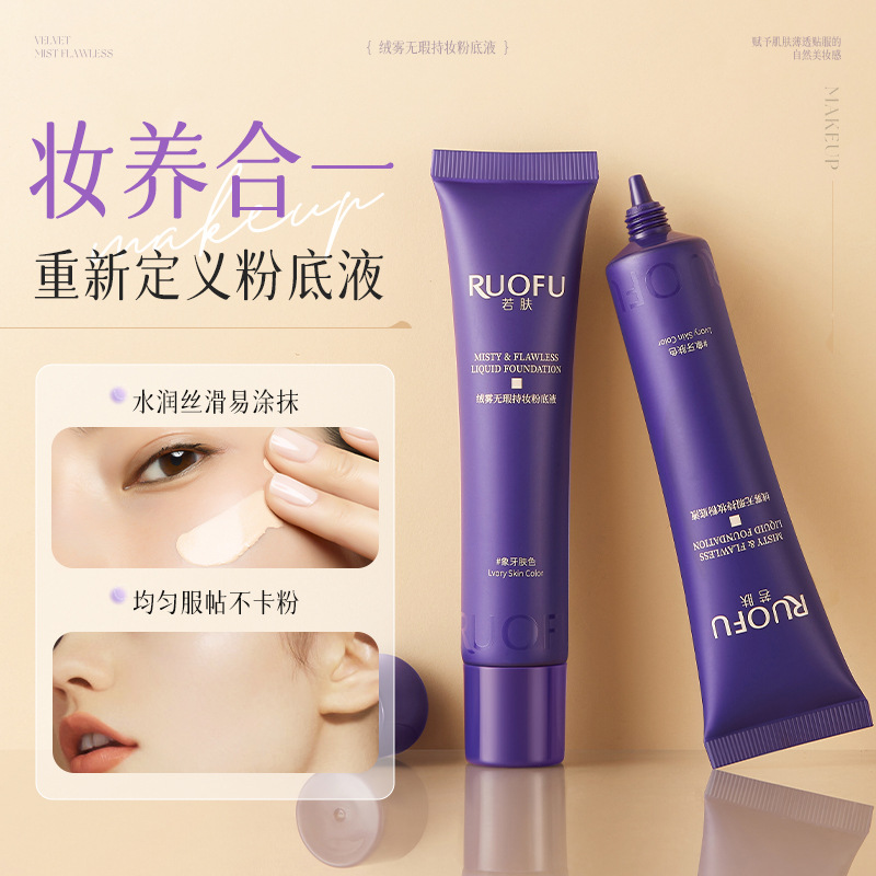 Rofu ベルベットミスト完璧な化粧持続リキッドファンデーション目に見えない毛穴オイルコントロール長持ち非除去メイクアップノンスティックパウダーコンシーラークリーム卸売