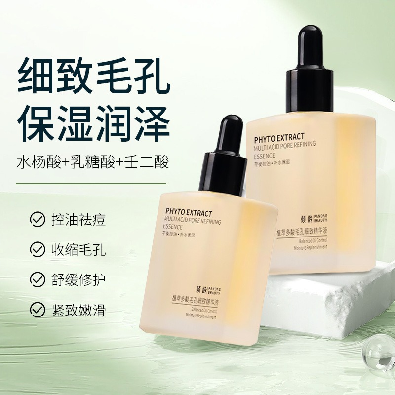 植物エキス配合のマルチ酸毛穴改善エッセンスは、潤いを与え、明るくし、荒れやくすみを改善し、毛穴を縮小します。