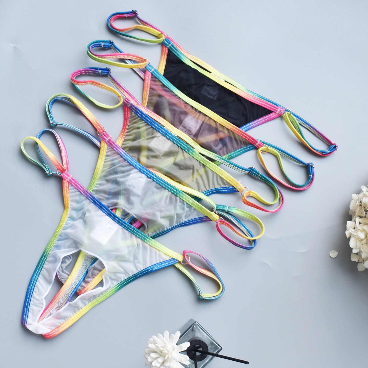 外国貿易の激情の男性の情緒のt字のズボンの虹の袋の男性の丁のズボンの同志のGAYの超薄の透明な氷の糸のB918