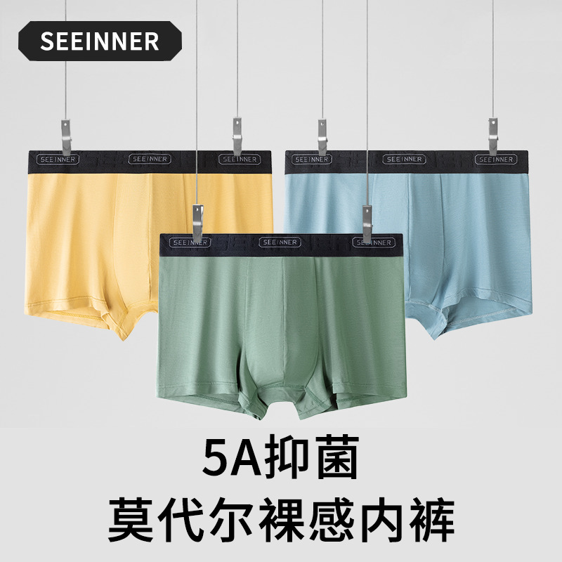 メンズパンツ5A銅繊維抗菌底枠モーデール通気性が薄い平角打底四角半ズボン男性パンツ