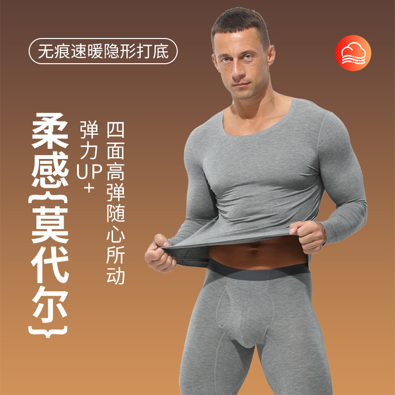 男性の秋の服の秋のズボンのモーダルの冬の丸首は底の薄い金の修身の保温の下着のスーツの青年のガードルを打ちます