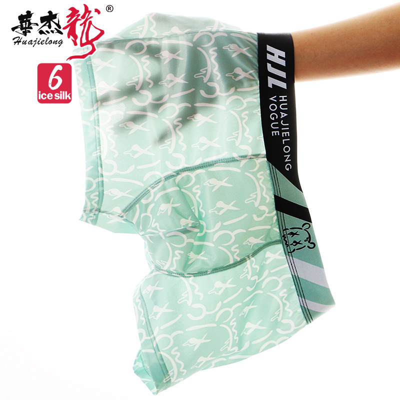 華傑龍の新型の男性の下着のプリントの卸売りの潮流の中で腰の修身の通気性の氷の薄い金の平角のズボンは代行します。