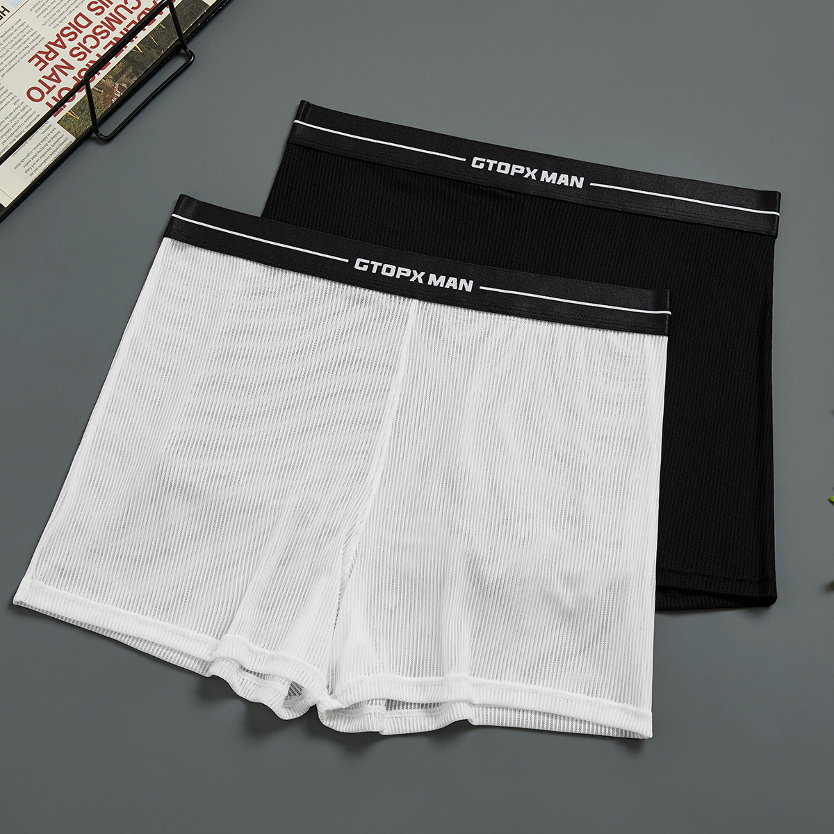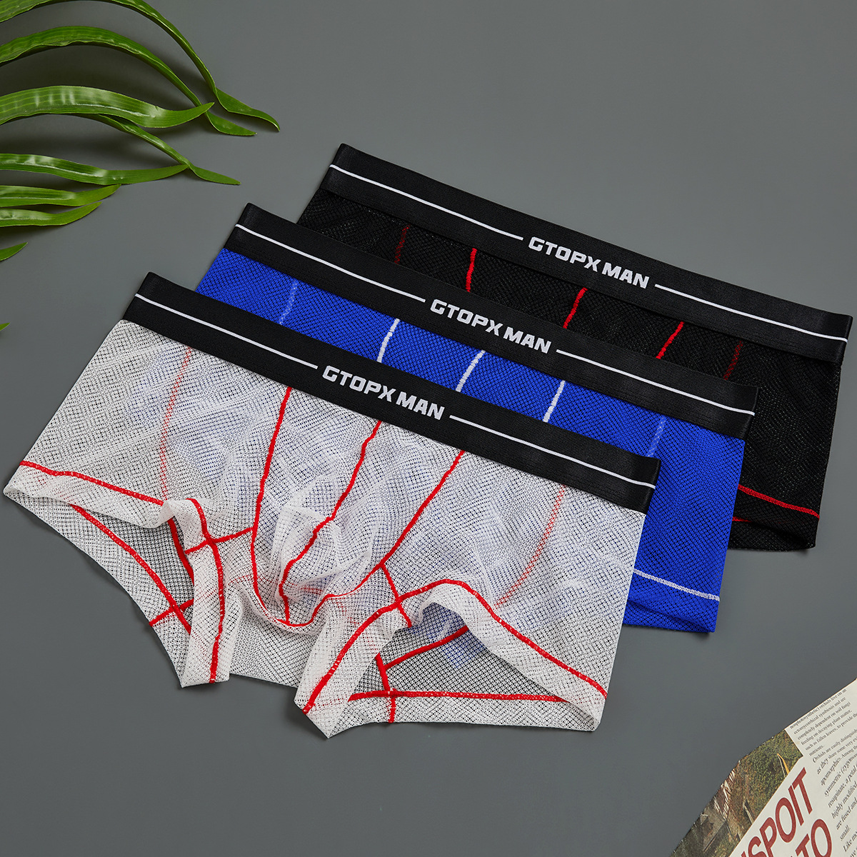 GTOPX男性全網糸氷糸U凸低腰薄タイプ透明セクシーメッシュ通気平角ズボン四角下着