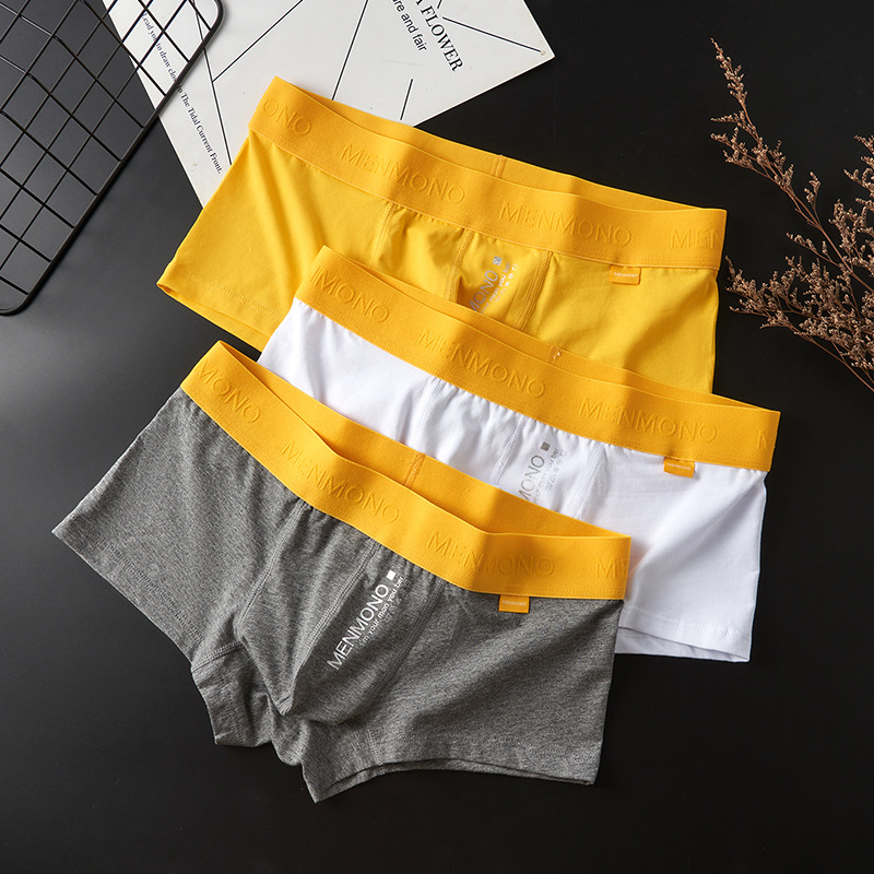 3本入りの新作ファッション男性純綿男性平角パンツスポーツ青年正装カジュアル麻灰パンツ