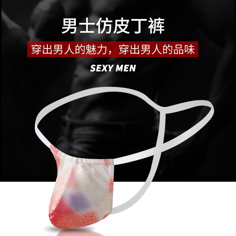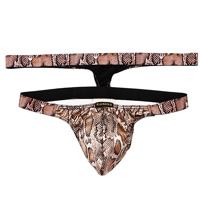 クロスボーダーの商品源の男性の下着の低い腰の蛇の紋様はアナコンダの紋様のt字のズボンの袋の小さい口のセクシーな趣味の下着の男性をまねます。