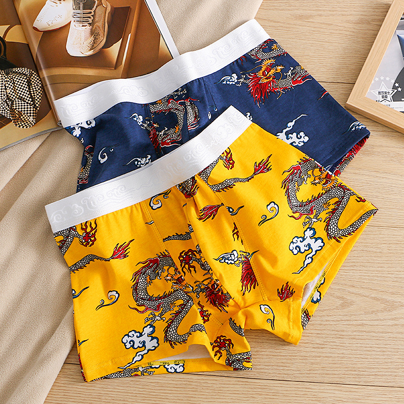 男性の下着の男性の純綿の通気性は平角のズボンの青年の個性のかわいいプリントの竜年の四角のズボンの頭の男性の金を修理します。