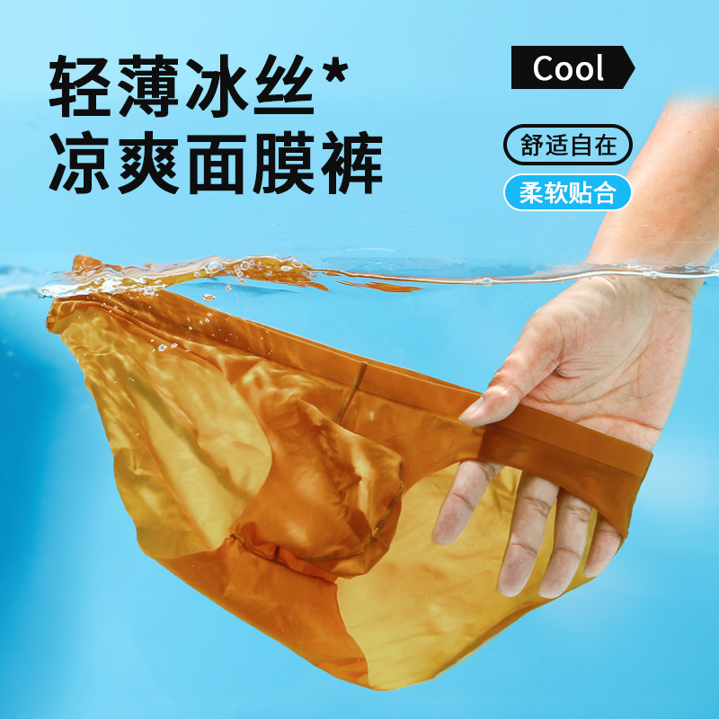 中山下着男性氷糸透明グラフェン純色青少年男性下着通気四角底パンツ