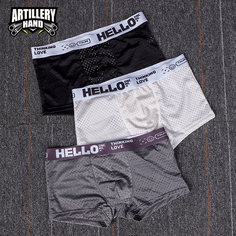 純色の網穴の男性の下着の四季のセクシーな通気性の青年の韓国版の網穴の男性の下着の平角のズボンは代行します。