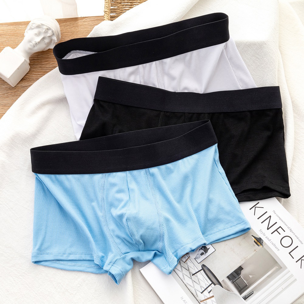 3本入りの新しい純色の男性の平角のズボンのねじのモーデールの薄いタイプの通気性の四角の下着
