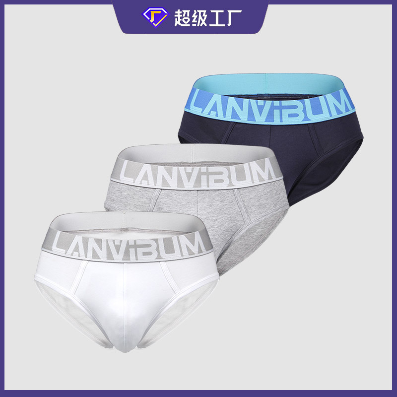 新品メンズパンツ現物lanvibumミディアムウエストねじ綿純色青少年パンツメンズ三角パンツ