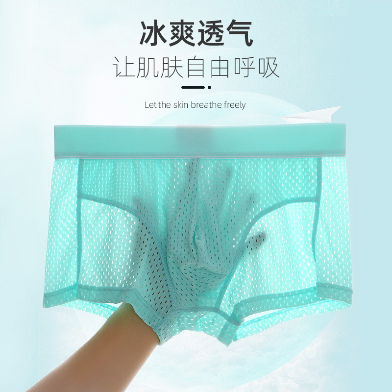 氷糸男性平角下着夏通気網穴透かし網目大サイズ四角半ズボンメーカー卸売り
