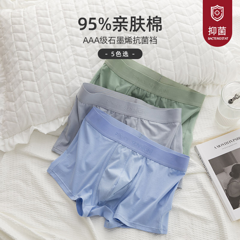 新商品現物男性下着平角ズボン純色中腰綿グラフェン抗菌下着男性四角ズボン