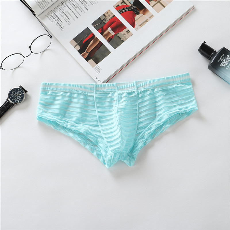 男性の小さい平角の下着の低い腰の四角のズボンの透明な薄いセクシーなセクシーな夏のストライプのpinduoデュオの通気性