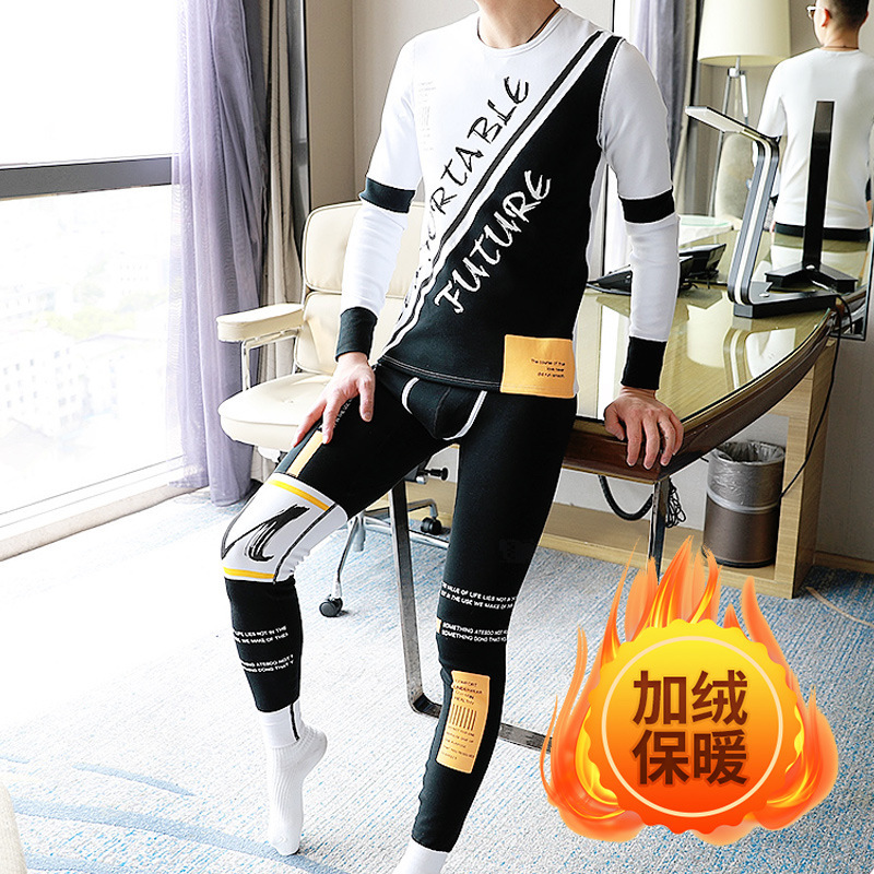 ファッションの男性のベルベットの厚いスーツの青少年の保温発熱の通気性のセーターのズボンの下着のスーツ