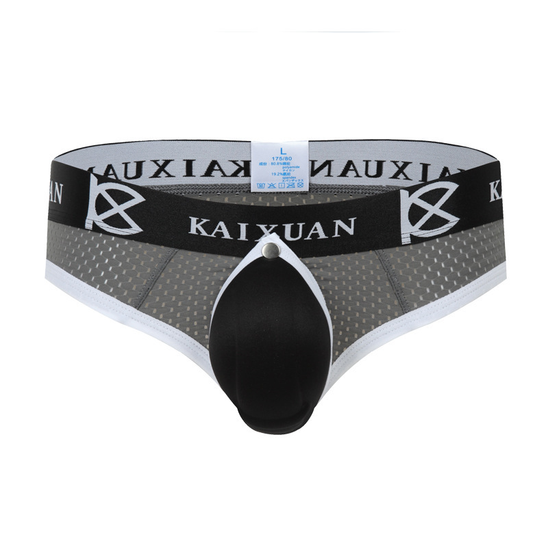 男性用低腰三角ズボンのセクシーu凸カップは大きい袋の下着の男性の情緒の下着の欧米の対外貿易を現します。
