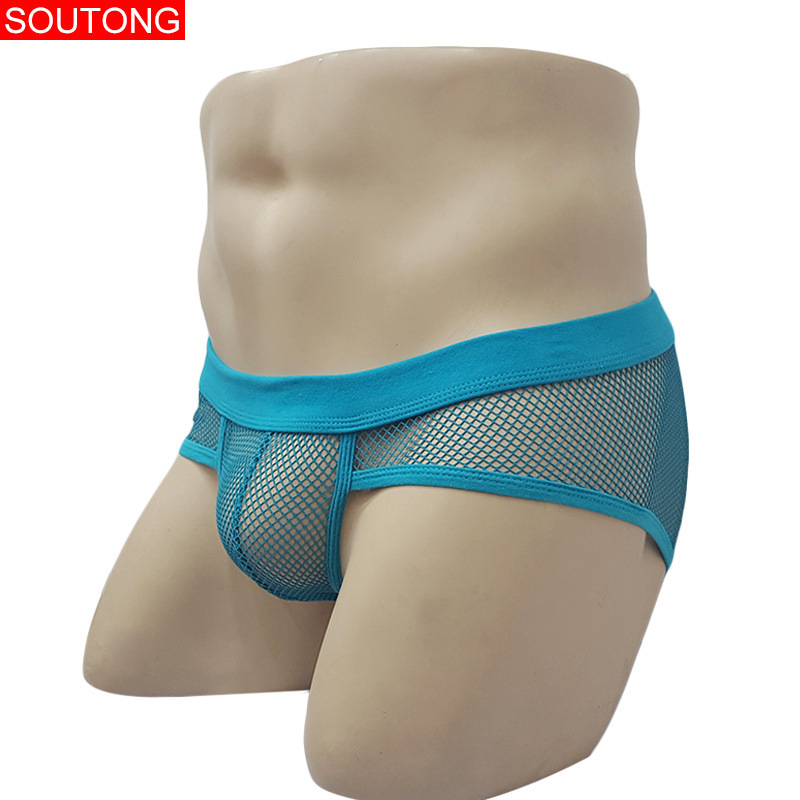 メンズパンツ男性三角パンツ網糸通気性低腰男半ズボンセクシー純色網目ズボン頭