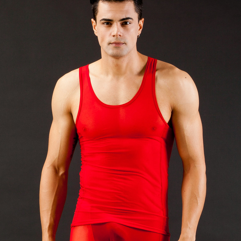 Wj/ネットはファッション欧米の男性ベストを透明でセクシーな氷糸ネット糸の薄い夏の修身運動ベストにします。