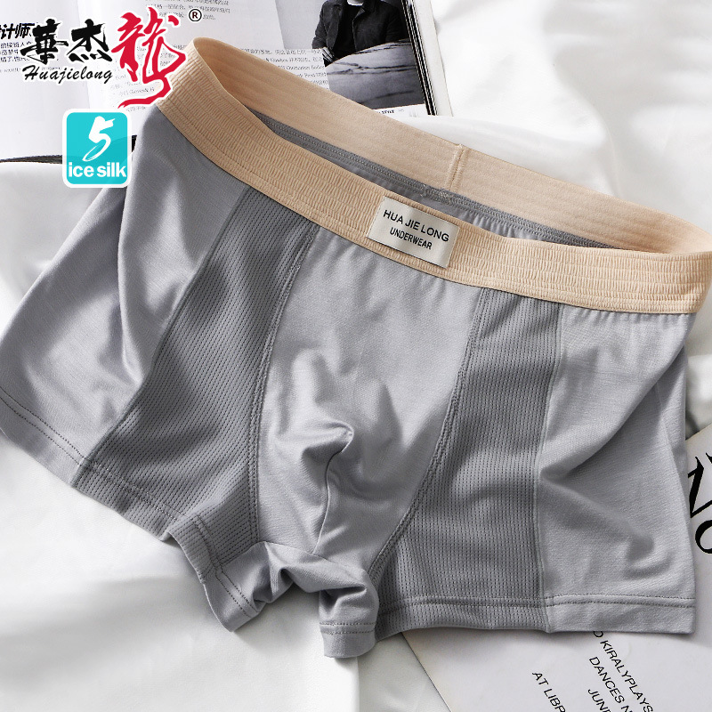 夏の氷糸ねじ男性下着双丁ズボン純色氷糸ねじ下着男性通気tズボン卸売り