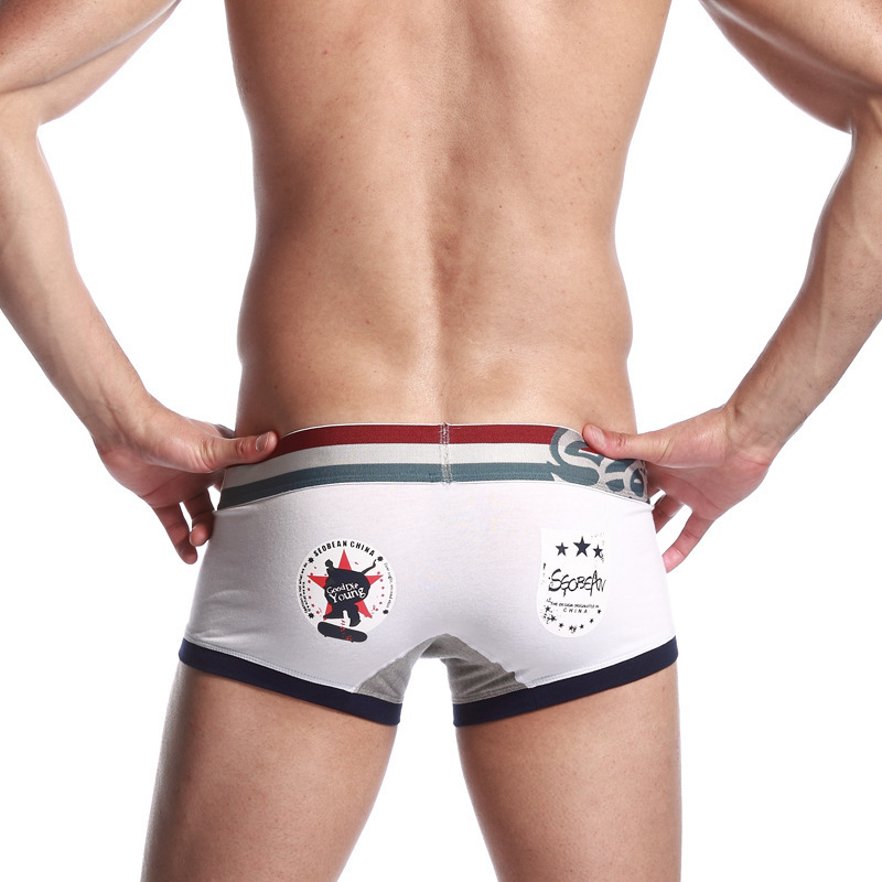男性の平角のズボンの下着の男性の綿の青年の潮の韓国版の通気性のゆったりしている運動のプリントの短いズボンの頭の平角のズボン