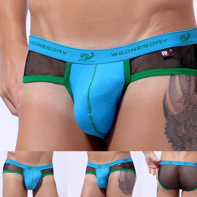 男性下着卸売り対外貿易工場ネットはwj七色の週のズボンを通気して綿のネットの紗の三角のズボンを通します。