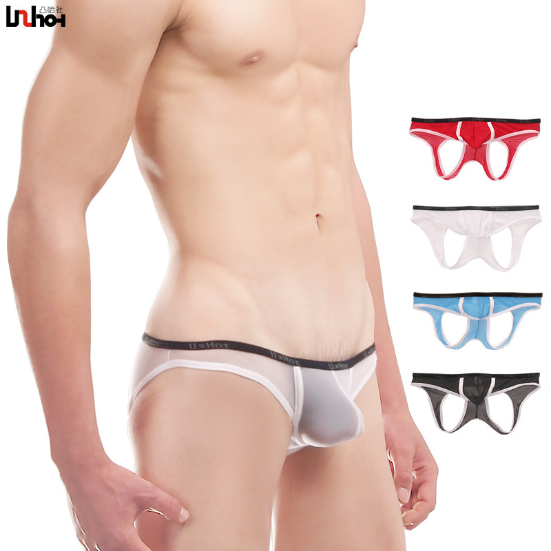 スポーツ通気性ネット糸低腰u凸袋ヒップアップセクシー男性ダブルtパンツ男性露出パンツ12005
