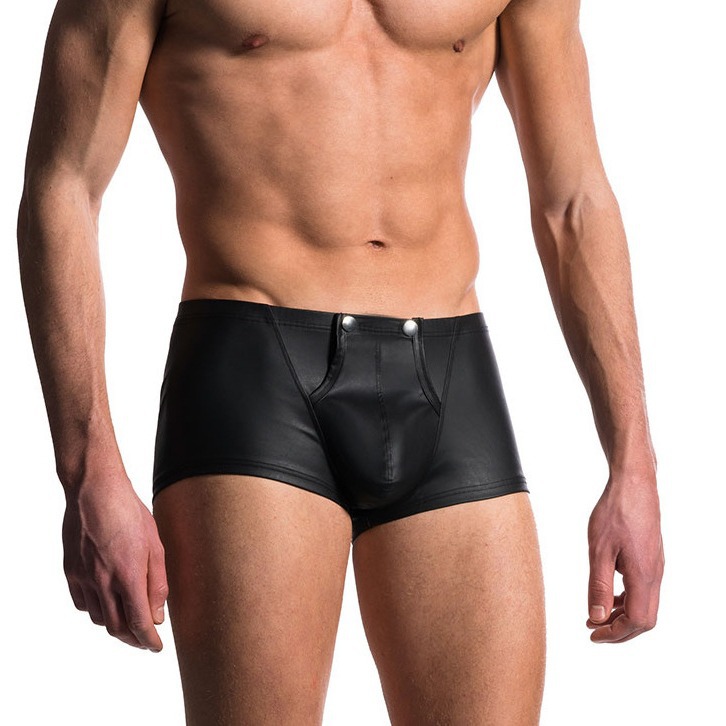 男性の平角のセクシーな漆の皮の下着は皮の低い腰の情緒のu凸の設計をまねます。