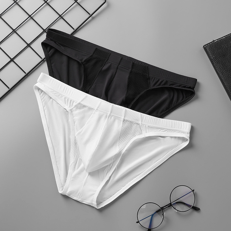 メーカークロスボーダーメンズ下着無地中空速乾ローウエストセクシー通気性ブリーフ