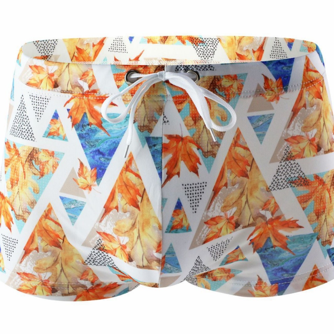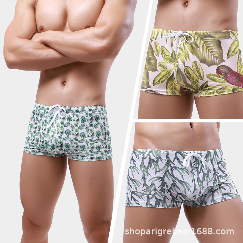 男性水泳パンツプリントシルク滑りセクシー対外貿易平角水泳パンツ