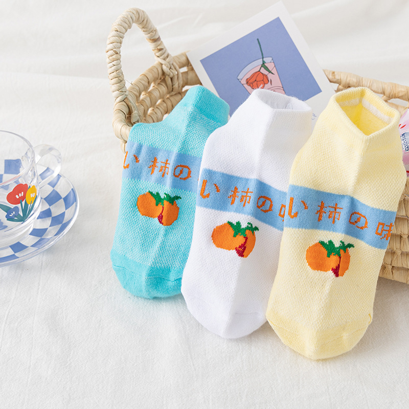 女性の綿の靴下のかわいい柿の図案の甘い学院の風の百合の女性の船の靴下の通気性の快適な新型のソックス
