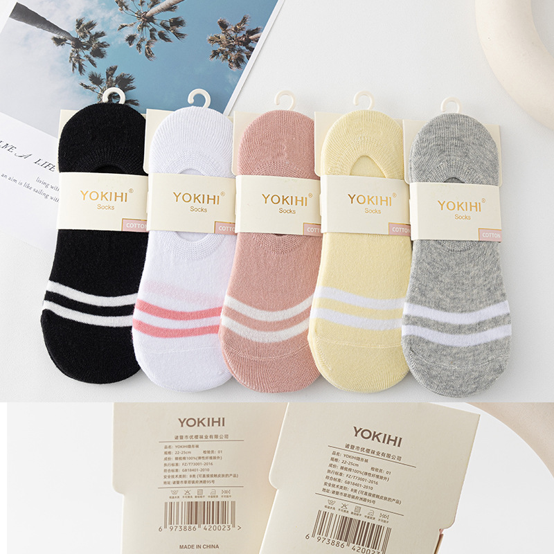 [Doudouyoumi] ボーンレスボートソックス女性の春夏綿の靴下薄い浅い口ストライプクマインビジブルソックス卸売
