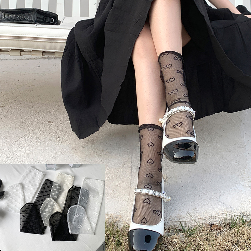 靴下の女性2025春夏の新商品の韓国風レースの小さい細い点の植毛ネットの糸の中の筒の靴下の快適な通気性の積み重ねの靴下