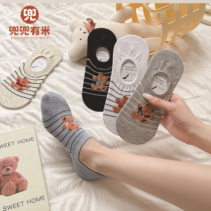 靴下純綿女性の夏通気性ベージュかわいいオリジナル漫画子犬ボートソックス脱落防止滑り止めインビジブルソックス
