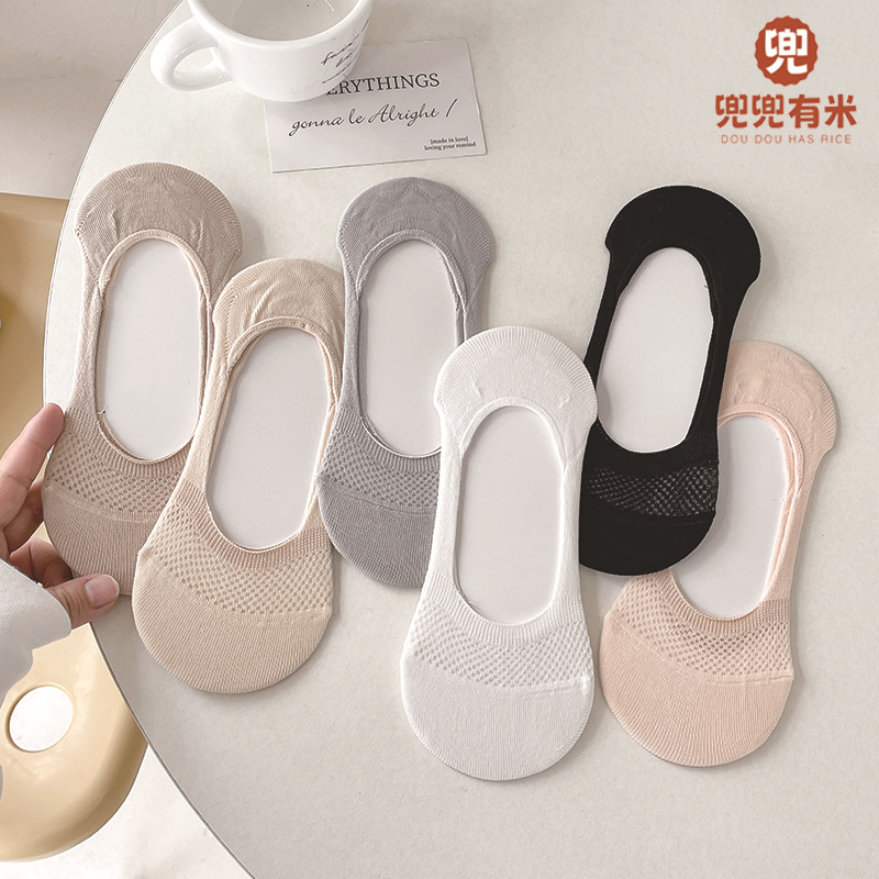 [Doudouyoumi] 骨なしボートソックス コットン レディース 夏 涼しい エアコン付き メッシュ インビジブルソックス シリコン 滑り止め 脱げにくい