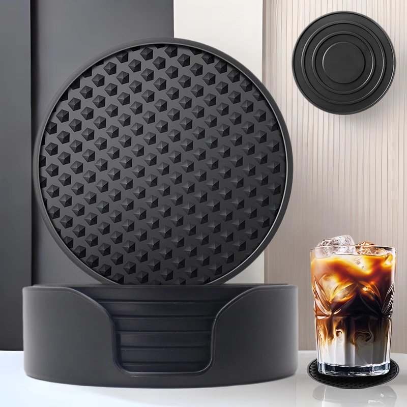 10cm円形シリコンコースター現代シンプルなオーバーフロー防止カップマット付き食品級滑り止めカップマットセット