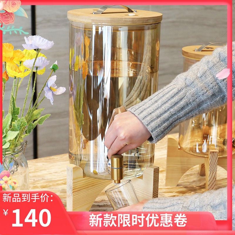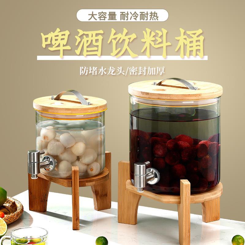 ガラス飲料桶蛇口付き耐高温自助商用ジュース桶コーラ桶ビール桶果物茶桶容器