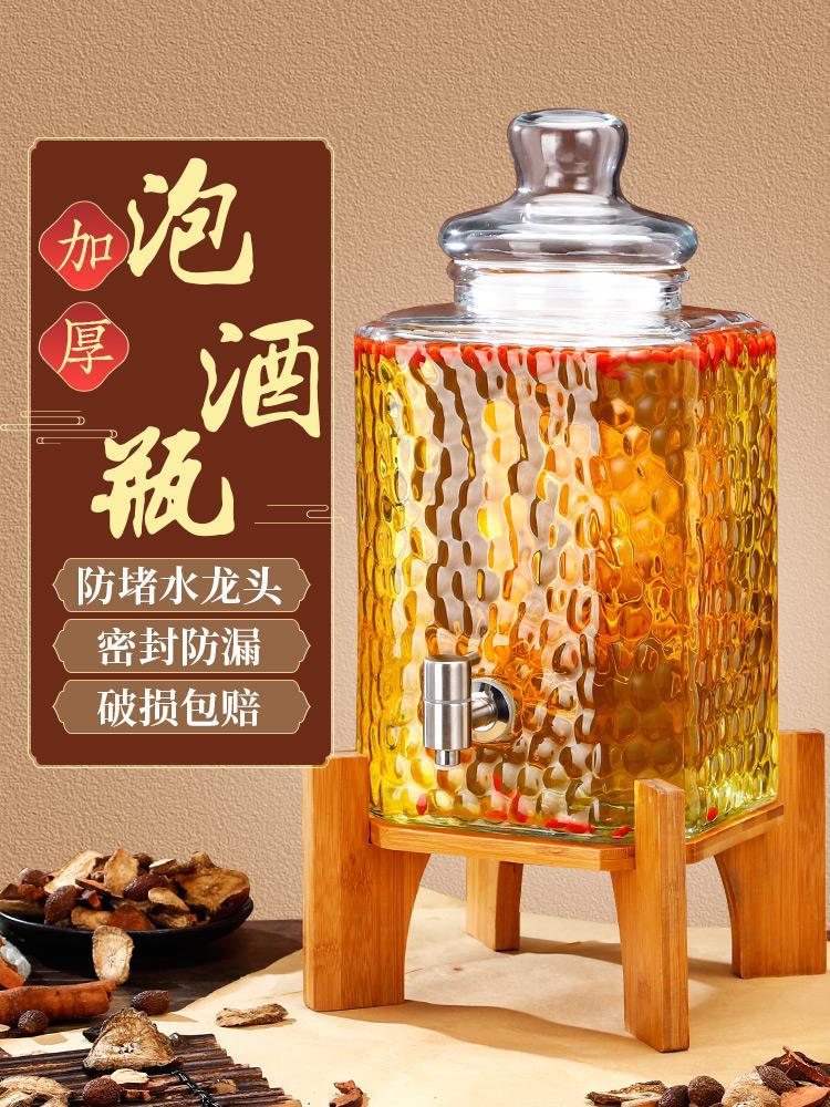 家庭用密封高ホウ素シリコンガラス泡酒専用ボトル酒壇薬酒容器蛇口付き青楊梅酒造缶