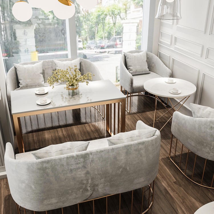北欧のレジャーの軽い豪華なソファーのテーブルと椅子の組み合わせの甘い店のミルクティー店の喫茶店のソファーのカードの席はレジャーを交渉します。