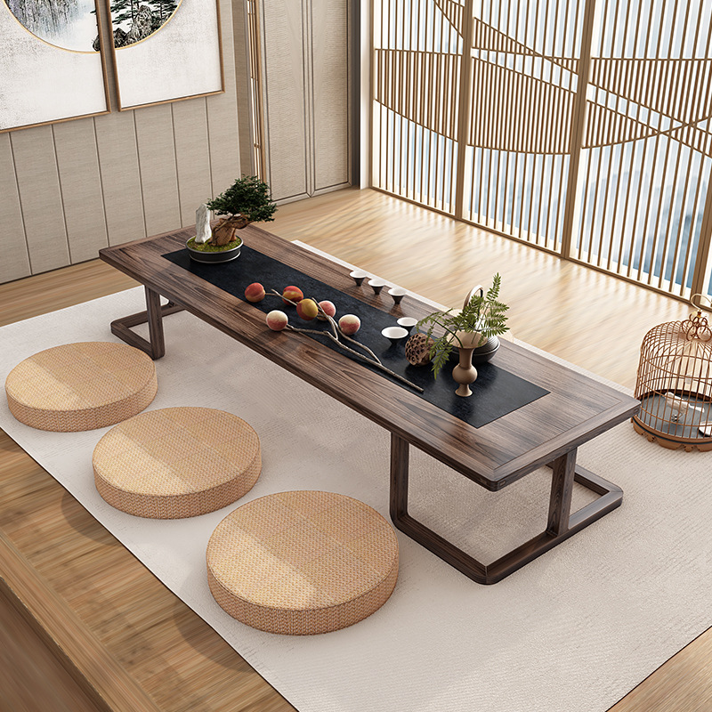 日本式の実木畳の茶卓事務室は低い足で茶卓の茶館の禅意の茶台のテーブルと椅子の組み合わせを接待します。